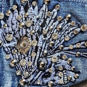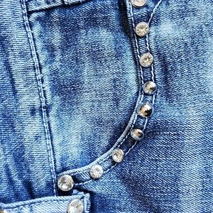 Elevate your style with these stunning blue jeans from . Featuring intricate embellishments, these jeans are perfect for adding a touch of glamour to your wardrobe.