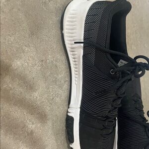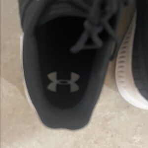 Stylish black sneakers with white accents. Perfect for sports and casual wear.
