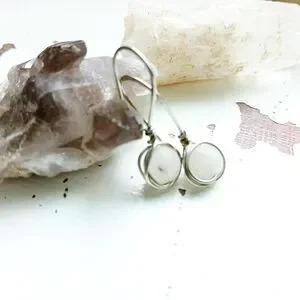 Hammered wire wrapped rose quartz gemstone dangle earrings