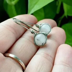 BOGO EARRINGS Hammered Rose Quartz Crystal Dangle Earrings, Boho Gemstone 1.5"