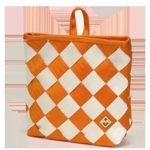 Maggie Net Bags Orange and White Checkered Backpack Seatbelt