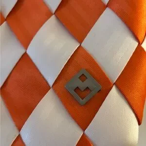 Maggie Net Bags Orange and White Checkered Backpack Seatbelt. Like new condition. Clean interior.