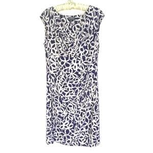 Lauren Ralph Lauren Blue White Abstract Cowl Neck Sheath Dress