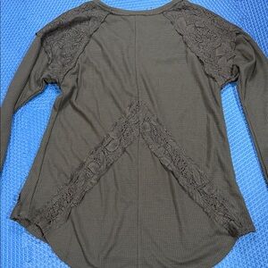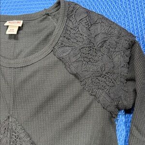 Mossimmo Supply Co long sleeve with unique washed gray coloring and lace floral shoulders