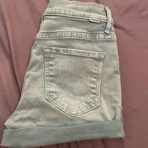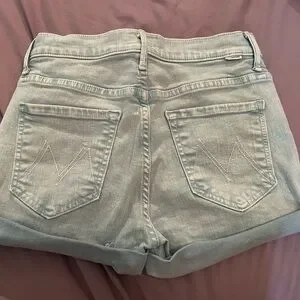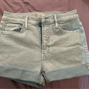 Chic light wash jean shorts by MOTHER. Features rolled cuffs and signature back pockets. Perfect for casual wear. These shirts are top tier and hands down one of my favorite pair of shorts. Size 26