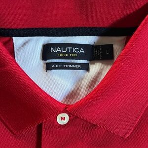-Nautica Brand solid red polo with blue Nautical logo on left chest
