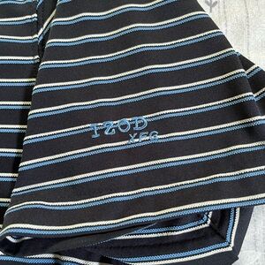 -Izod Brand navy blue, light blue & white striped polo with IZOD XFG logo on the left sleeve