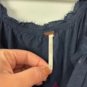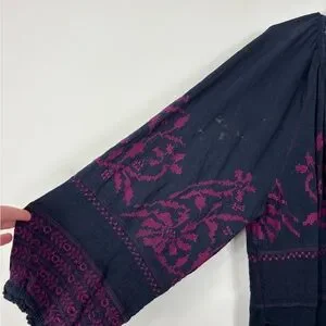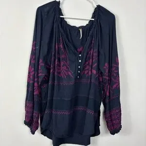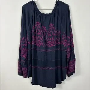 Free People Persuasion Embroidered Top Womens M Oversized Slouchy Boho Hippie