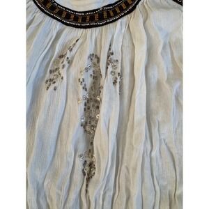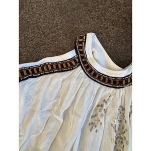Embroidered Boho Blouse Cold Shoulder Top Beaded Festival Party Free People