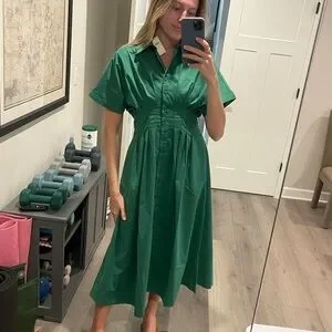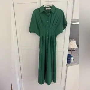 Stylish green midi dress with short sleeves from Anthropologie. Perfect for any occasion. Super flattering. Very soft and comfortable material. Only worn once!