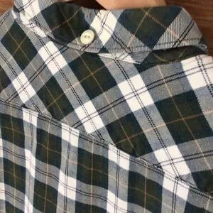 Barbour Cream and Green Plaid Flannel Shirt L Slim