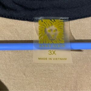 Anne Klein Vintage Beige White & Black V neck Long SL Pullover Top 3X