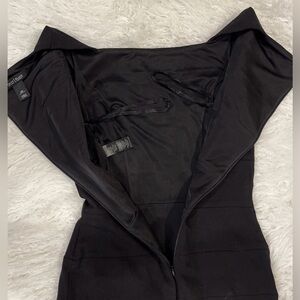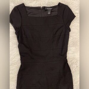 ◼️White House Black Market Black Sheath Lined Ruffled Bandage Midi Women’s Sz 6