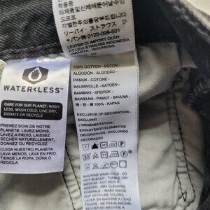 Black Levi's jean shorts size 28 (womens size 6). Shorts have a button fly