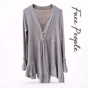 Free People Olive Stone Green Waffle Knit Ruffle Tunic Top XS NWT