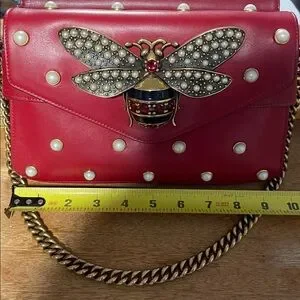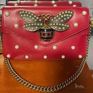Gucci Queen Margaret Pearl Studs Broadway Red Bee Chain Bag ! ❤️💛