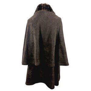 Parkhurst One Size Brown Fleece Cape With Faux Fur Collar, Has Inside Armholes. This elegant styling piece is in excellent pre-owned condition and features: