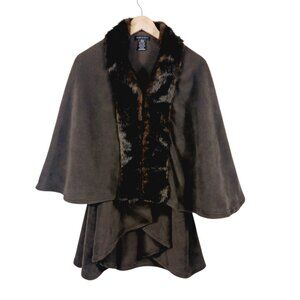 Parkhurst, One Size, Brown Fleece Cape With Faux Fur Collar, Has Inside Armholes