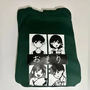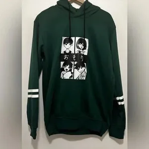 Hit video game OMORI character hoodie merchandise from Amazon in hunter green with 2 white stripes on each sleeve. Unisex Size Medium. Hood with drawcord. Preowned excellent condition - never worn, has been washed. No flaws, stains, rips, tears, fraying, etc.
