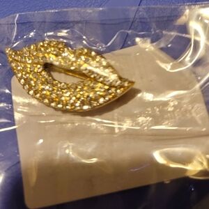 BROOCH LIPS pin fashion rhinestone fun pin clear