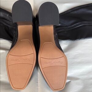 Chic black heeled boots by Franco Sarto. Sleek design with a modern touch. Ideal for versatile styling. 3” heel - shaft has some stretch able to fit my 16” calf circumference!