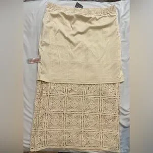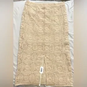 Stylish crochet skirt by Primark. Versatile and chic. Elastic waistband and lined for comfortable use. Skirt has a slit in the back, no flaws.