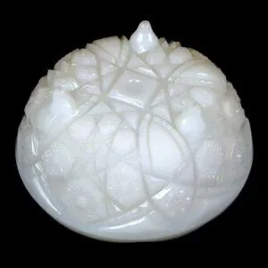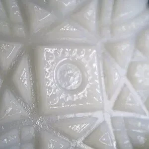 McKee introduced the Toltec pattern in the early 1900s, as part of their “tec” line, which included designs like Aztec and Nortec. Known for its opaque milk glass and intricate pressed patterns, Toltec pieces remained popular among collectors well into the mid-century.