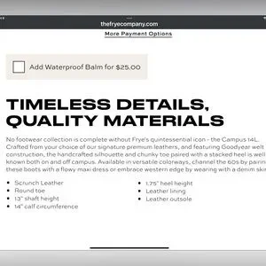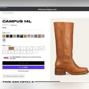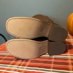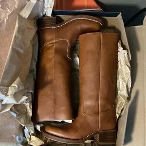 New in box Frye Campus boots in saddle.Shaft is approximately 13 inches boot circumference is approximately 14 inches heel is about 1.75 inches.Gorgeous and classic pair of Frye boots.
