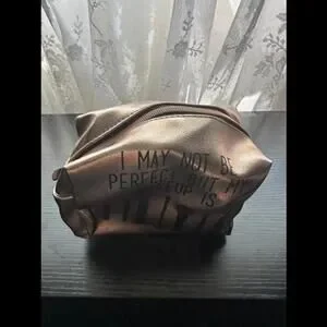Metallic Rose Gold Cosmetic Bag - "I May Not Be Perfect But My Makeup Is"