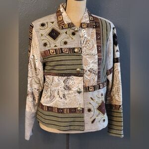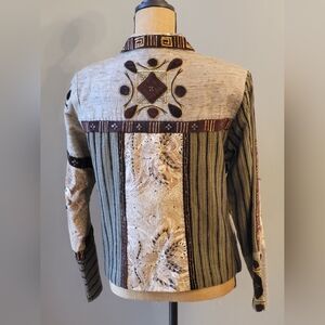 Sandy Starkman vintage 80s jacket in earth tones of brown/gray/copper with embroidery and beads.