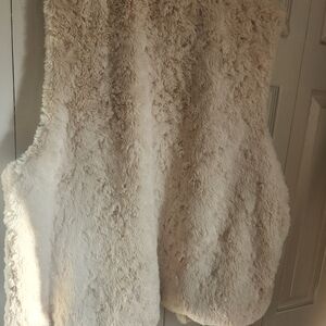 Betsey Johnson White Faux Fur Vest With Pockets XL