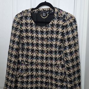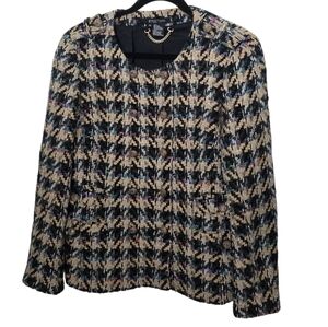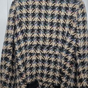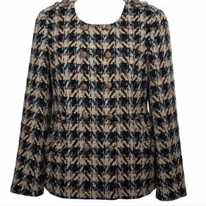 Etcetera Tweed Boucle Wool Houndstooth Blazer Black Multicolor Size 12