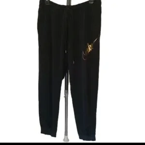 Super nice gently worn black 2 pc matching sweatsuit with a metallic front logo.