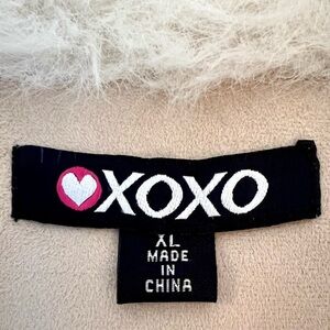 Chic XOXO faux suede/microfiber teddy jacket. Features a plush faux fur collar and cool horn-like button toggles. Stylish and cozy for any outing! Excellent pre-loved condition!