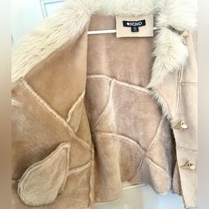 XOXO Women's Tan Faux Suede Teddy Jacket with Faux Fur Collar, Size XL, EUC!