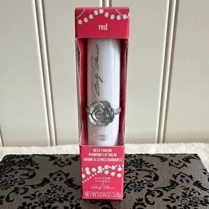 Hard Candy lip balm in bold red. Adorned with a silver rose detail.