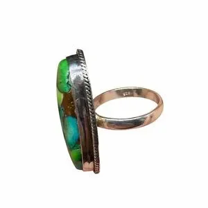 Genuine Arizona Kingman Mine green & blue copper matrix peacock dahlia turquoise stone ring. Size 7. Solid sterling silver and stamped 925.