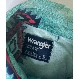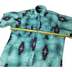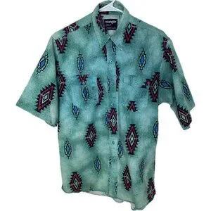 Wrangler Aztec Button Up Short Sleeve Men’s Cowboy 16 Large Blue VTG