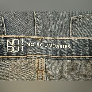 No Boundaries distressed “Mom” jeans feature high rise waist with patches behind distressed areas. Juniors size 17. Perfect for the fall!