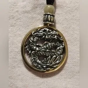 This stunning necklace features a beautifully crafted dragon pendant in gold and silver tones. Perfect for adding a touch of elegance to any outfit.