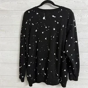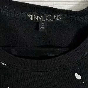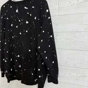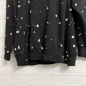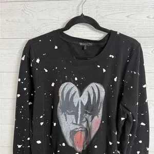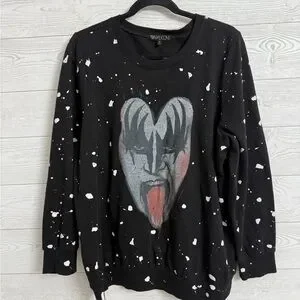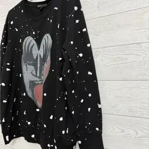 Black oversized pullover sweatshirt with white splatter paint design with KISS (Gene Simmons) print on front. Size 2 (XL) Like new condition. See pictures for details and normal wear and tear.