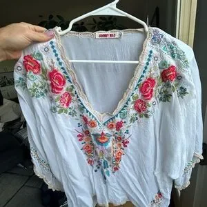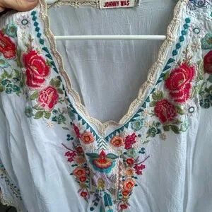 Johnny Was White Floral Embroidered Blouse