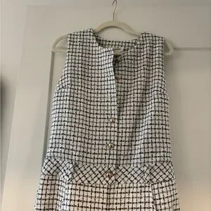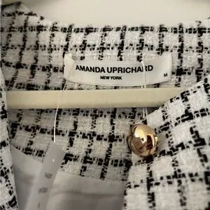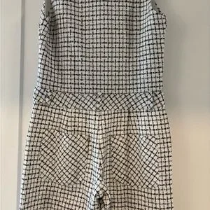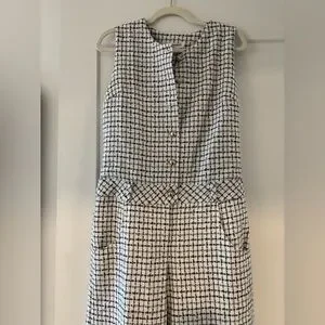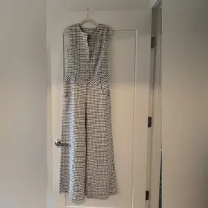 Stylish checkered jumpsuit by Amanda Uprichard. Features a sleeveless design and button details. Perfect for a modern look.
