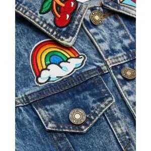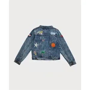 Lola + The Boys "All About the Patch" denim jacket with multiple patch appliqué