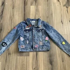 Lola and The Boys Women’s Large All About The Patch Denim Jacket Colorful EUC