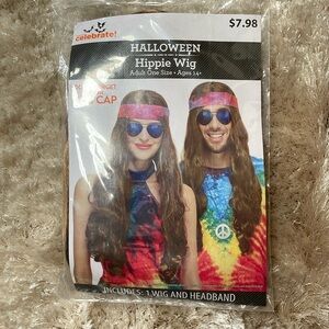 Way to Celebrate Halloween Hippie Wig and Tie Dye look Headband. Adult One Size. 100% Polyester. NWT. Perfect for your hippie costume!