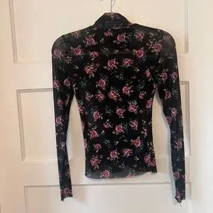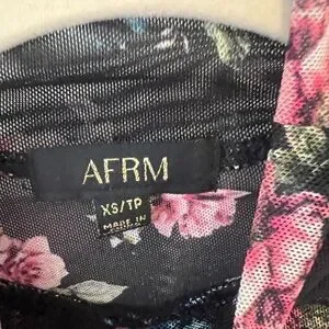 Chic AFRM mesh top with pink and green floral design. Perfect for layering.