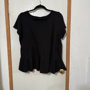 🔑 Keywords: Torrid waffle knit, tiered top, peplum tee, black short sleeve, size 1 1X, textured knit, casual blouse, plus size top