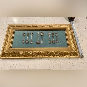 Sterling Silver Salt Spoon Collection (8) mounted Gold Frame Wall Art