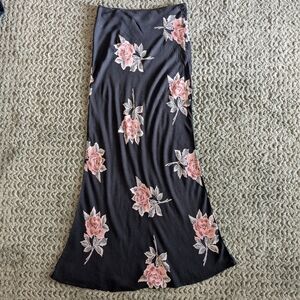 Vintage 90's whimsygoth grunge rose floral print maxi skirt with buttons up the side